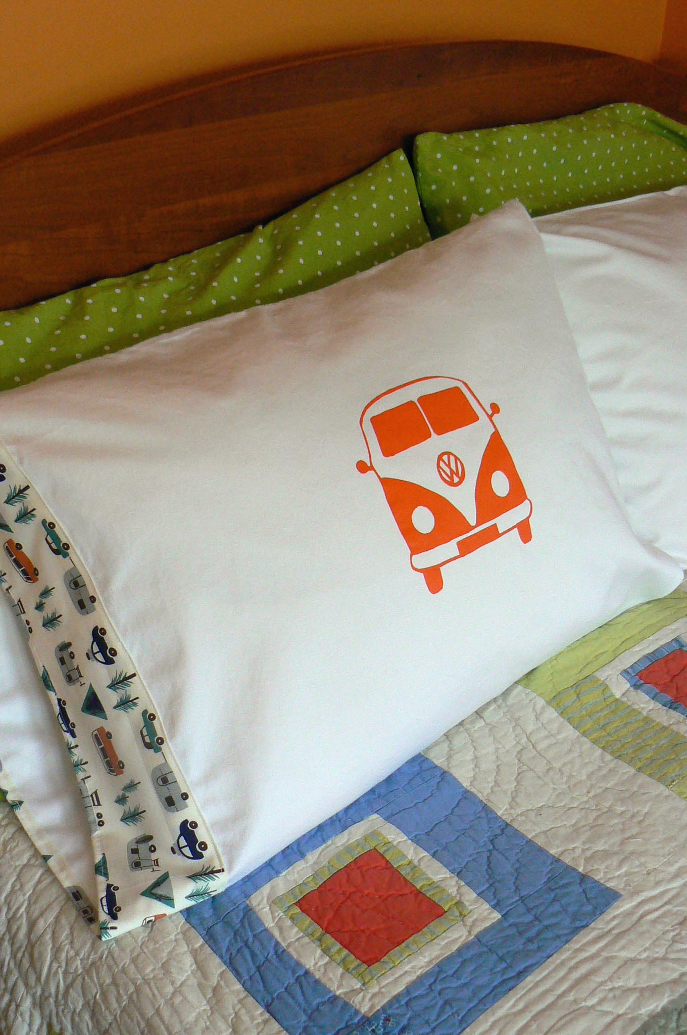 VW bus nuts–this one’s for you! I’ve been meaning to post this VW Bus printable for a while. I used this freezer paper stencil to make pillowcases for my son last spring. If you haven’t discovered freezer paper stencils for creating crisp, silkscreen-like images on fabric, here’s the complete how-to. For impatient, lazy sorts (like me), they offer immediate craft gratification. Craftification.