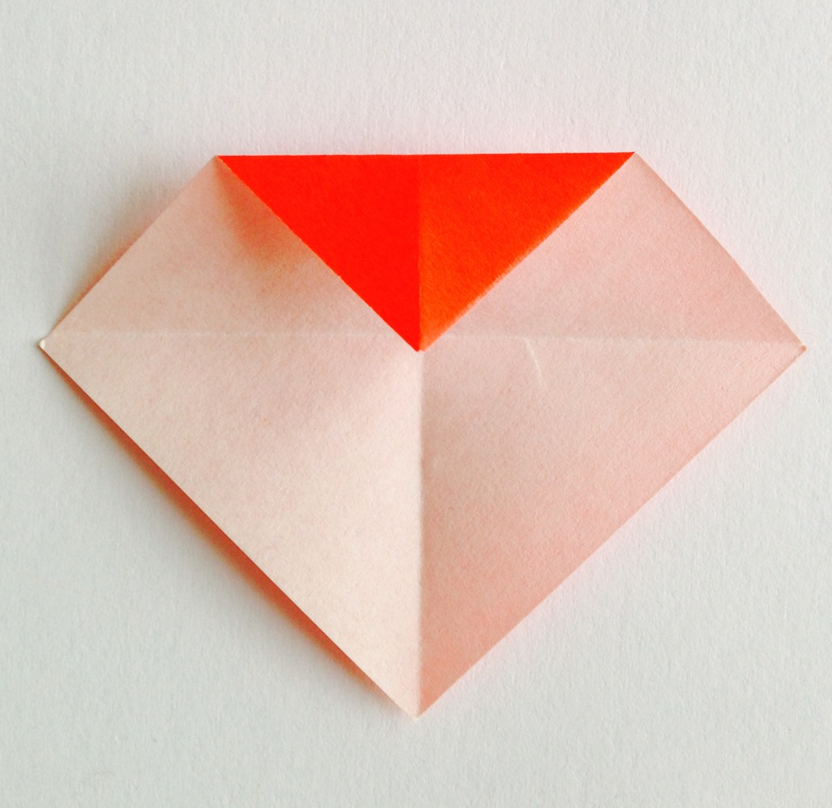 IMG_6980 Published February 1, 2016 at 2300 × 2236 in Make: Paper Hearts « Previous Next » Step 3: Fold point to center fold.