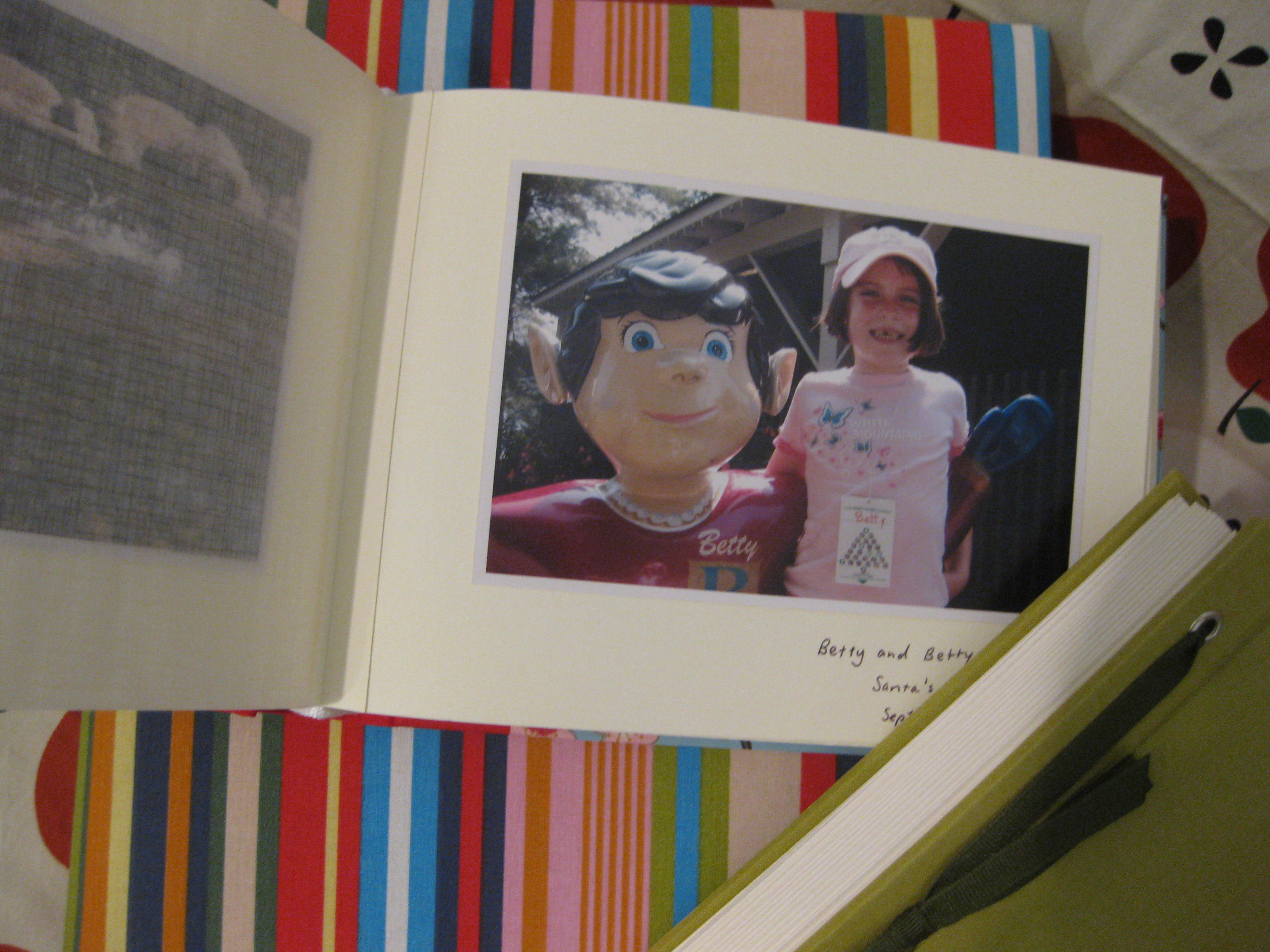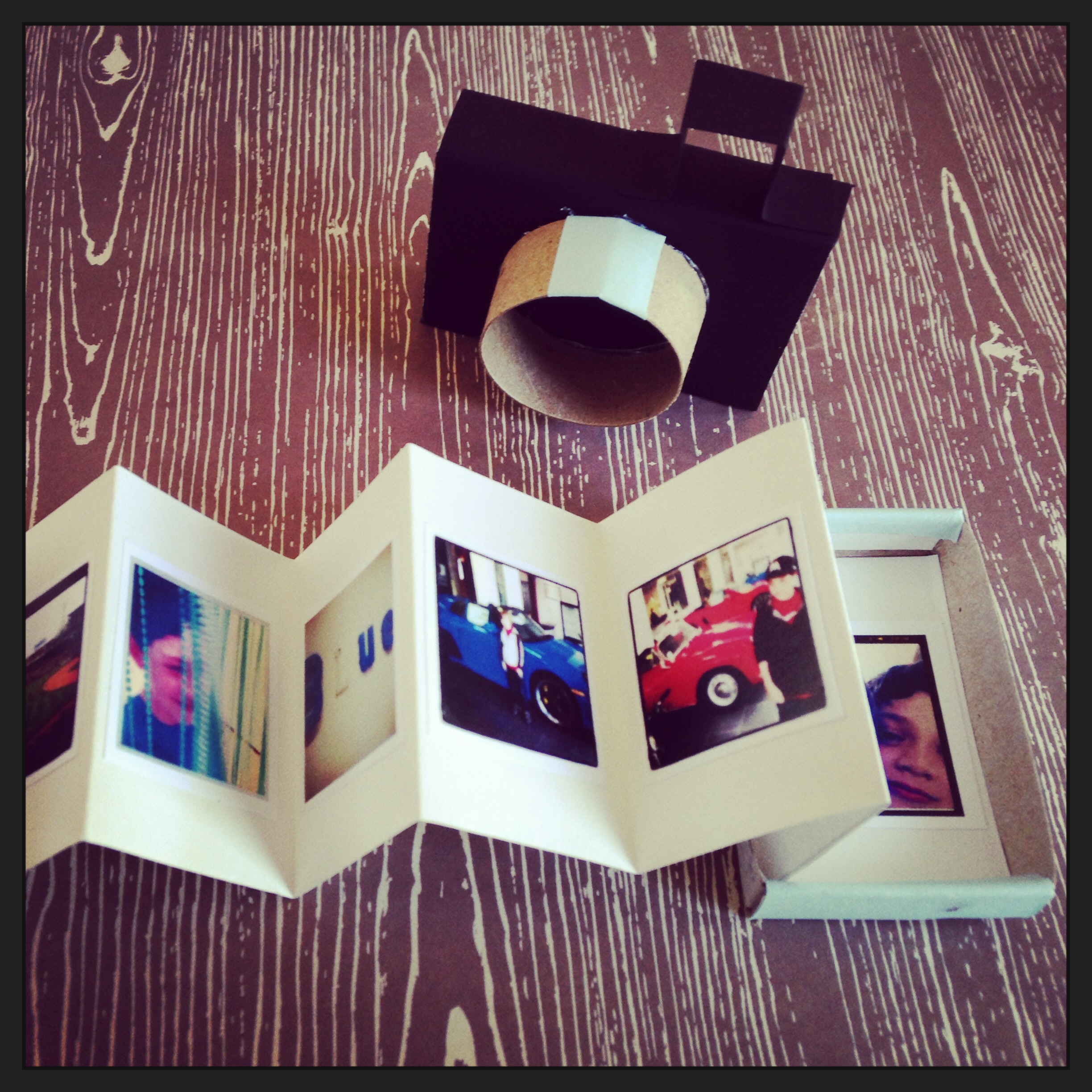 Inside is the treat: an accordian album of tiny photos. I went old-school for this part—good old cut and paste. I printed the photos on regular printer paper (albeit high quality printer paper) and glued the photos in place.