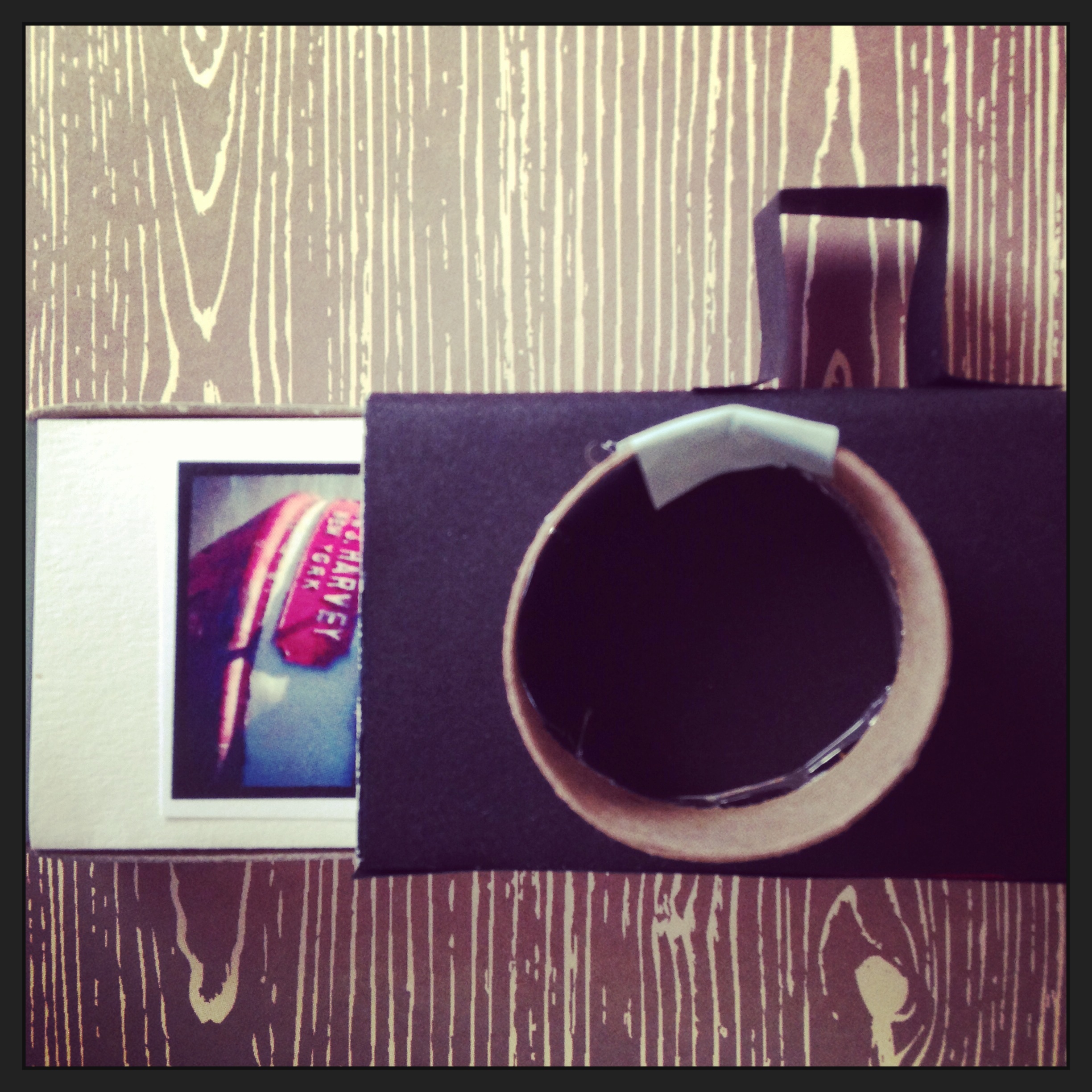 This matchbox project was inspired by “cameras” my brother and I used to make when we were kids out of band-aid boxes (back when they were tin, which really wasn’t that long ago, was it?). We taped on a lens and a viewfinder and snapped imaginary pictures. To make this wee version, I covered a matchbox with black paper, except the ends, which I covered in light blue washi tape. Then I folded a strip of paper to make a viewfinder, and sliced off a circle of cardboard from a toilet paper roll to create the lens.