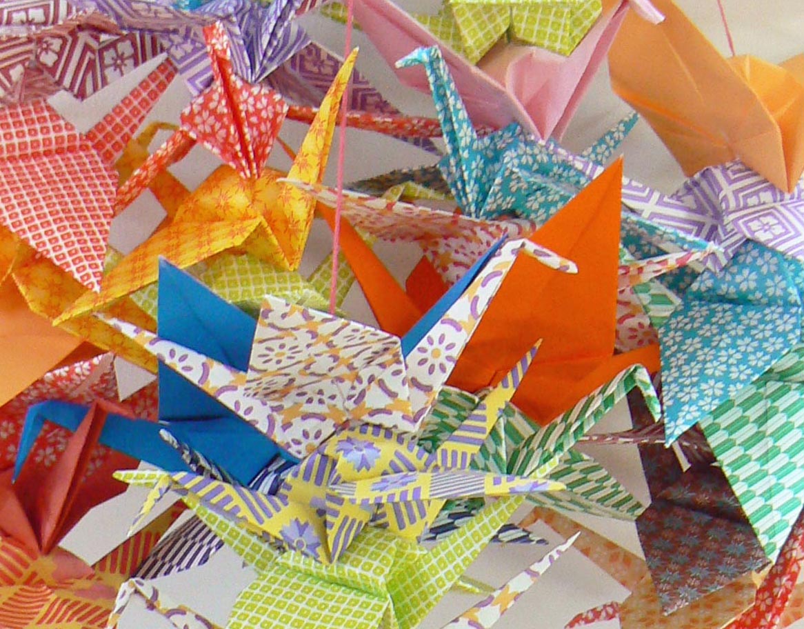 This is what I’ve been up to this week: folding paper! Specifically, cranes–for a “1,000 crane” fundraiser at my son Zeke’s preschool for those affected by the recent earthquake in Japan.