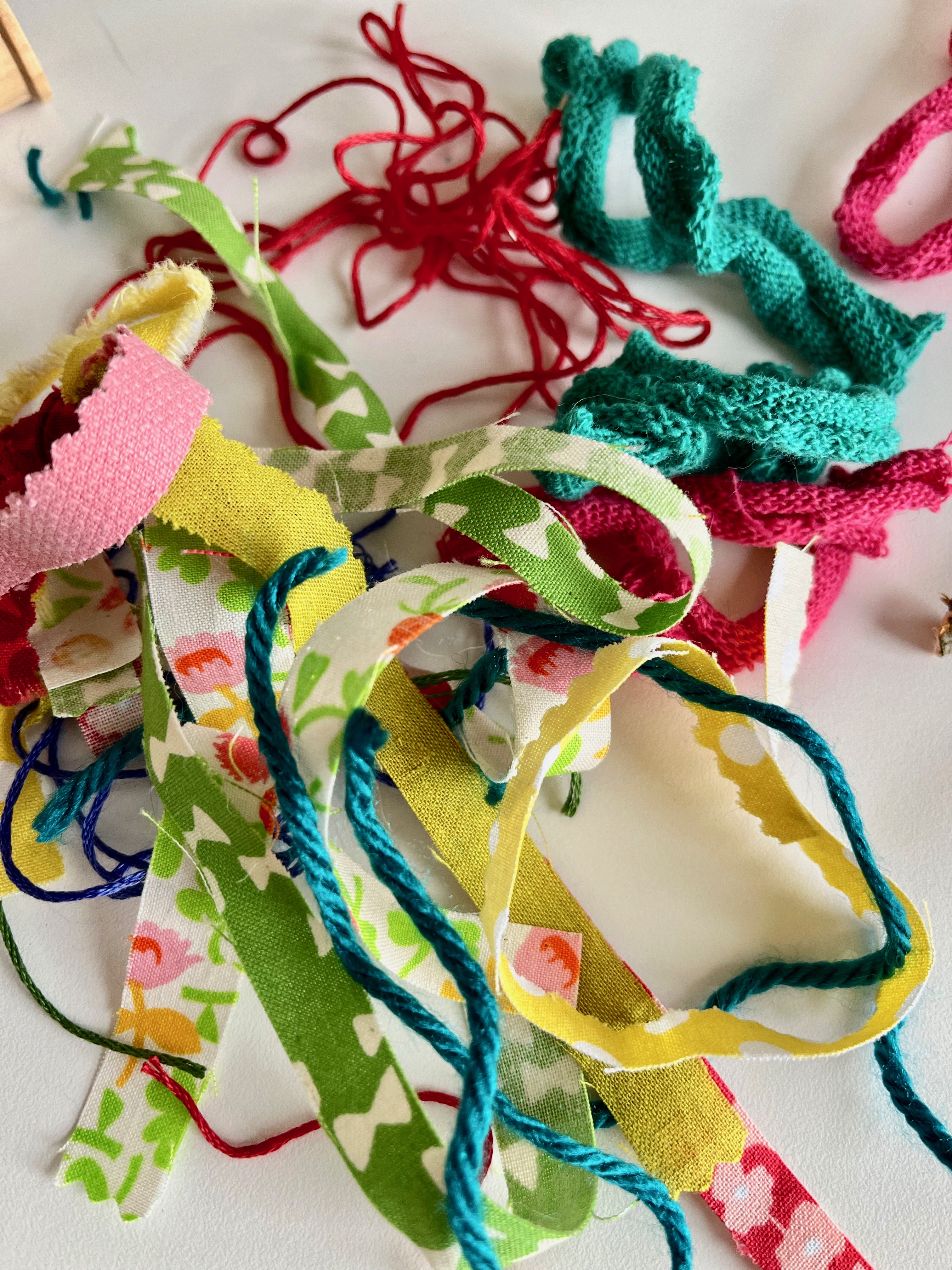 - Wrap yarn into a “pony tail,” knotting it on one side. Glue the knot to the inside of the roll and then trim the tail as needed.