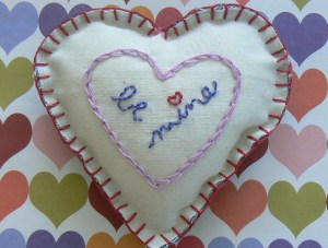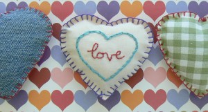Step 1: Cut out hearts from construction paper (about 5 x 5″). Let the kids do this step. Lopsided? Looking more like a liver than a heart? Remember: it’s part of the charm!