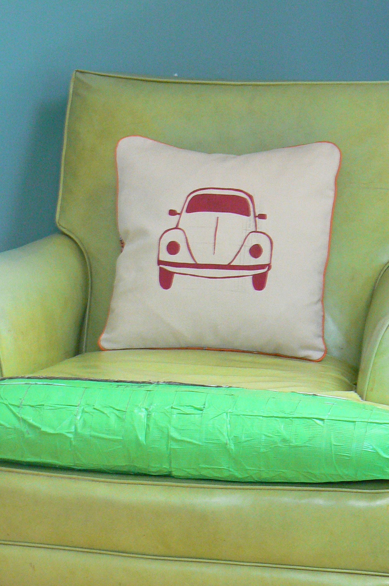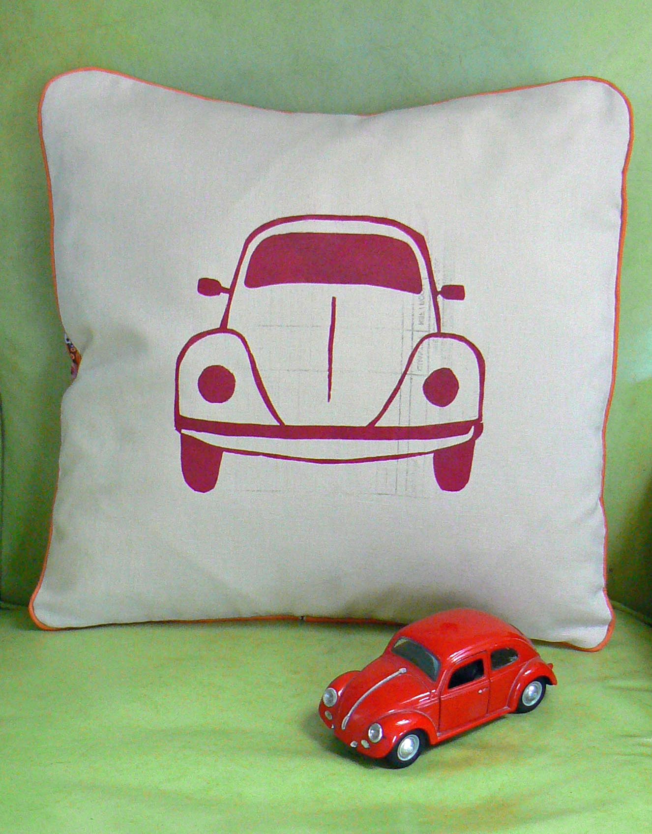 Next, I’ll share the pattern for sewing the VW Bug pillow (complete with groovy pompom trim)!